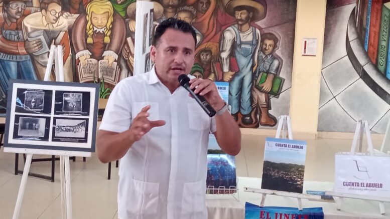 Durante la inauguración, en la Biblioteca “Álvaro Obregón”, Beymar, docente, escritor e investigador, mostró imágenes de la presa La Villita, en la etapa de construcción y de los yacimientos de mineral de Las Truchas, como también de la vida cotidiana y personajes de esta sociedad.