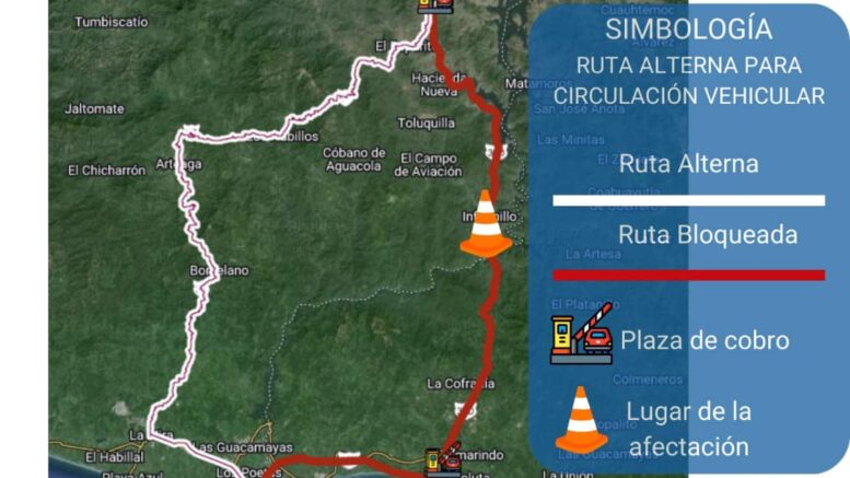 Ante ello, se informa que el tránsito hacia Lázaro Cárdenas, por recomendación de la Secretaría de Comunicaciones y Transportes, se ha desviado desde la caseta de Las Cañas hacia la carretera federal que conduce a Arteaga y posteriormente a la ciudad portuaria.