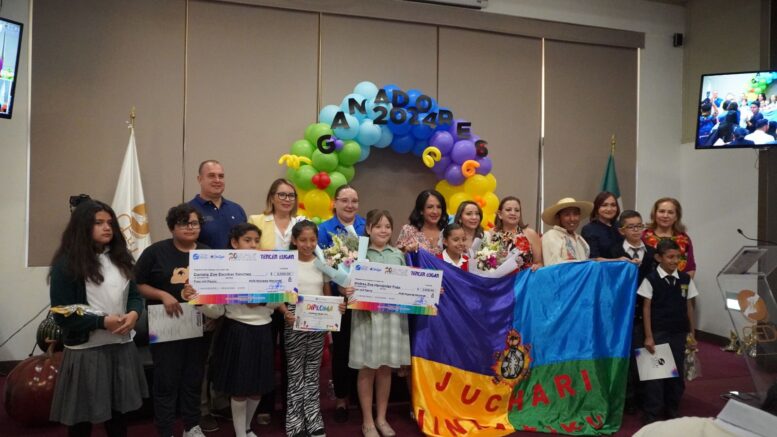 Lázaro Cárdenas, Michoacán.- Madison Nicole Suárez Rodríguez y Génesis Escalera Magaña, de escuelas de este municipio de Lázaro Cárdenas, destacaron entre 17 mil 983 trabajos presentados a concurso en el vigésimo concurso de dibujo infantil “Ilumina tus Derechos”, que este año tuvo como tema “El camino es la paz. Alto a la violencia en la casa y en la escuela, incluidas mascotas”.