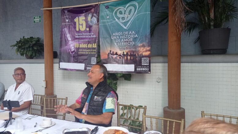 Lo anterior, al participar, a nombre de esa dependencia, como invitado en la conferencia de prensa de la Central Mexicana de Servicios de Alcohólicos Anónimos, en donde se dio a conocer las actividades de la 15a. Semana Nacional de Información en la Radio.
