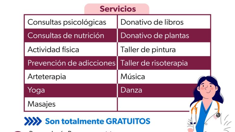También se ofrecerán consultas de nutrición sin costo, así como una activación física, un taller de risoterapia y se aplicarán cuestionarios para detectar dependencias al alcohol, tabaco y sustancias nocivas, para darles tratamiento en el Centro Comunitario de Salud Mental y Adicciones (Cecosama) de Lázaro Cárdenas.