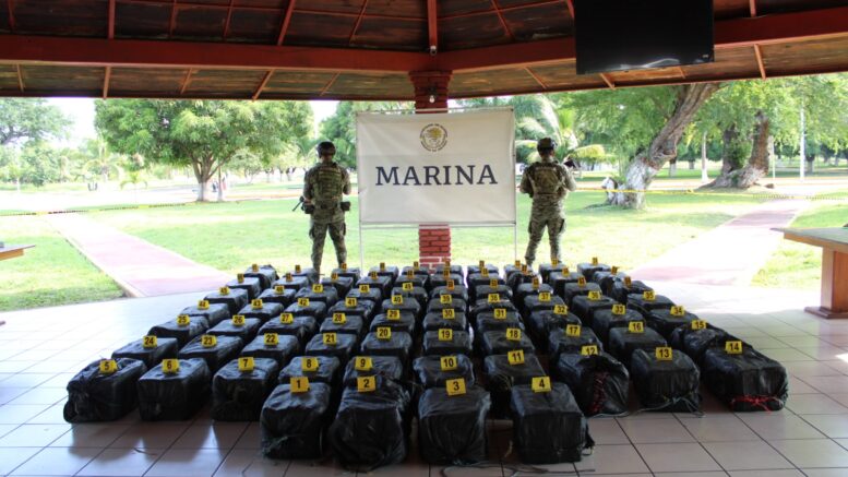 Ciudad de México.- Personal adscrito a la Secretaría de Marina en Lázaro Cárdenas, Michoacán, llevó a cabo el aseguramiento de aproximadamente 1.7 toneladas de presunto clorhidrato de cocaína, en las costas adyacentes al estado.