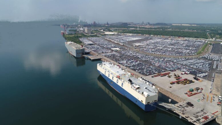 Al tiempo que la terminal de la empresa SSA México, que se precia de recibir 50 marcas automotrices, con 54 millones de pesos amplía sus patios para almacenaje de autos. La obra se ejecuta desde este año y concluye en 2025.