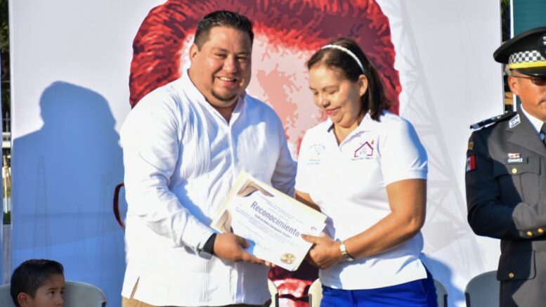 En el marco de la ceremonia cívica por el octogésimo séptimo aniversario de la expropiación petrolera en México, el presidente municipal Manuel Esquivel, entregó el reconocimiento a la maestra Reyes García, por enseñar y fortalecer a diferentes generaciones de alumnos los valores cívicos, ambientales, culturales y morales.