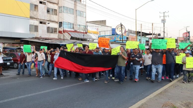 Los trabajadores en huelga, junto con sus familias, marcharon la tarde-noche del pasado sábado, partiendo de las instalaciones de la presidencia municipal, hacia la avenida Rector Hidalgo, para pasar frente a la Unidad Deportiva, donde se realiza en estos días la Expo Feria 2025, para de viva voz y con cartulinas con mensajes escritos, su rechazo a la propuesta del alcalde Manuel Esquivel Bejarano, de condicionar la aceptación del 5% de aumento directo al tabulador.
