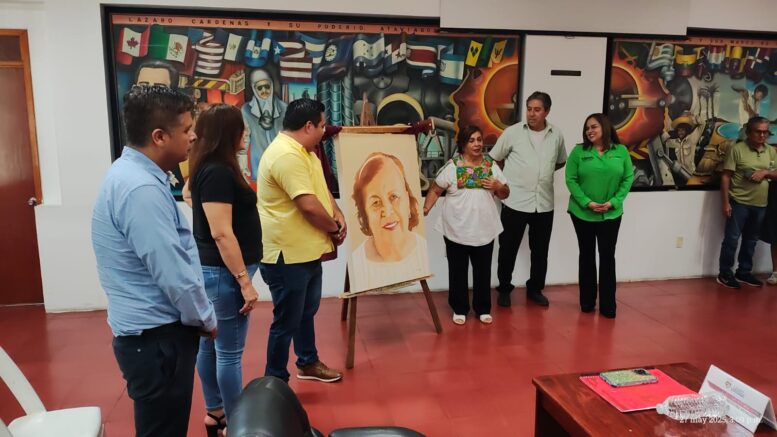 Momento emotivo fue cuando el exjefe de tenencia de La Mira, el Mtro. Jorge Alberto Peñaloza, le obsequió un cuadro que le pintó y obsequió Conchita, el cual fue develado en la Sala de Cabildo.