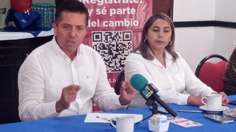 En la conferencia se acompañó de Carmen Pille Calderón y de Álvaro Santillán López, de la coordinación estatal y distrital de Somos.Mx.
