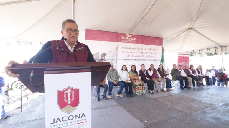 El presidente municipal de Jacona, Isidoro Mosqueda Estrada, agradeció los esfuerzos conjuntos de los gobiernos, y afirmó que su administración trabajará en la introducción de servicios públicos municipales en el terreno que donó el Cabildo para la construcción de la UMF Plus y el CECI.
