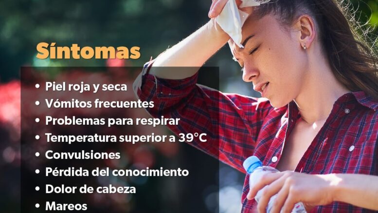 Un golpe de calor puede sentirlo una persona que expuesta al sol, que llega hasta los 40 grados en el cuerpo, piel roja o enrojecida, náuseas, dolor de cabeza, desubicación y pérdida de la conciencia que ya es estado crítico.