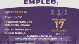 Morelia, Michoacán.- Del miércoles 17 al viernes 19 de agosto, la Secretaría de Desarrollo Económico (Sedeco), en coordinación con el Servicio Nacional de Empleo (SNE), llevarán a cabo talleres para buscadores de empleo en siete municipios.En…